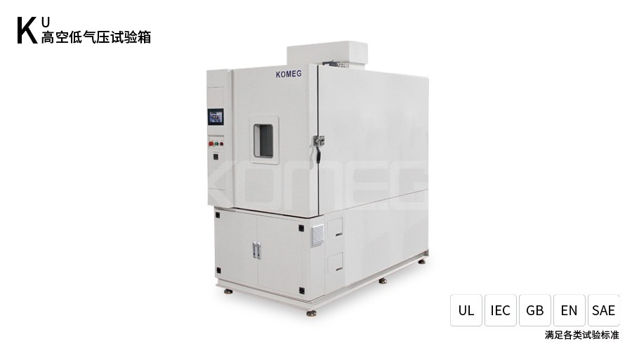 用于模擬和評價PACK級別電池包及系統(tǒng)在真空低壓(即高海拔高度為4000m 或等同高度的氣壓)條件下的安全性能測試,即在11.6kPa(1.68psi)的負壓下測試6小時,測試電池發(fā)生的變化反應(yīng),符合ICE62133-2012,UL1642,UN38.3,GB31241-2014相關(guān)標(biāo)準測試要求。